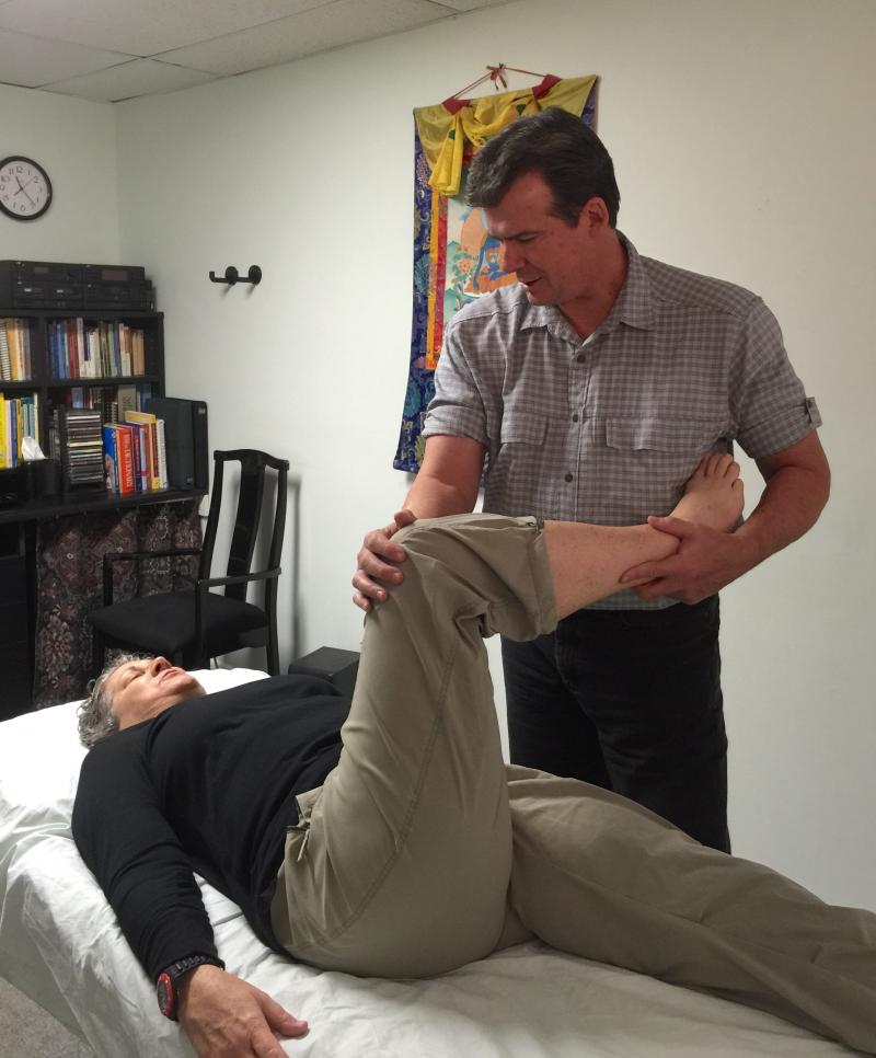 Working from the knowledge that the body's myofascial and skeletal systems are inseparable, what affects one always affects the other. Accordingly, Myoskeletal Alignment focuses on treating stubborn pain conditions by mobilizing joints through muscle manipulation. Shown here is the Tigney technique which helps alleviate back pain.